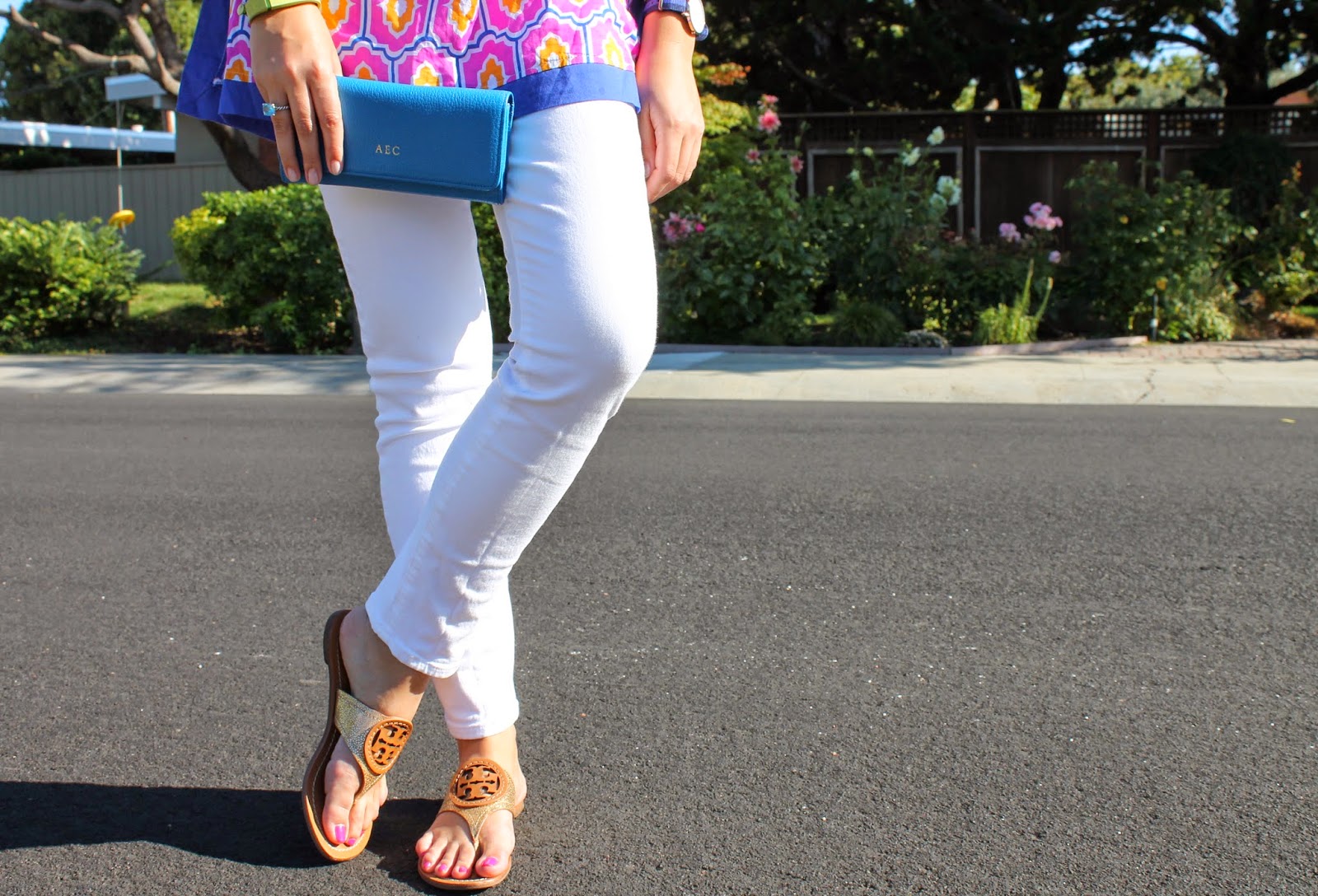 I’m really feeling that top you’re wearing! Such fun colors and looks great with the white jeans. Why is everything monogrammed so cute?! I need to get some monogrammed accessories ASAP 🙂
