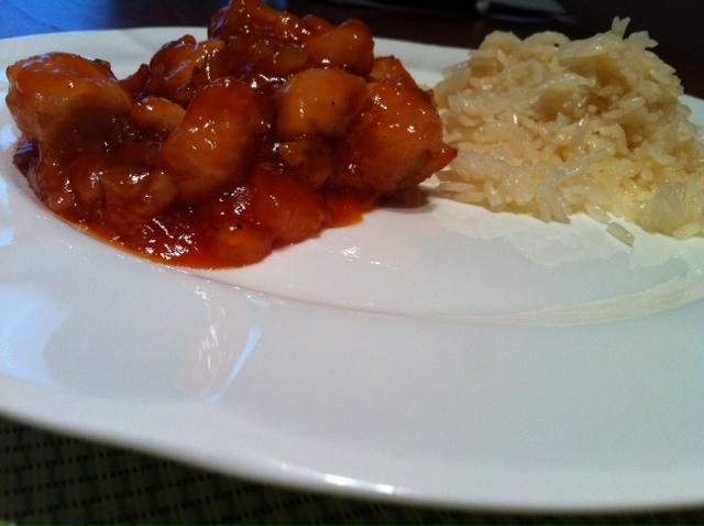 I had a craving the other day for some Chinese food, but I often get deterred by the fact that it’s extremely unhealthy and I usually need to drink some eight bottles of water to relieve the salty taste in my mouth after my meal. I came across a recipe on Pinterest the other day for a baked version of sweet & sour chicken. Of course I was skeptical, baked Chinese food? That seems like an oxymoron… But let me tell you this chicken is divine. I paired it with a little Jasmine rice and viola my Chinese food craving was fulfilled! I will definitely be stockpiling this recipe into my favorites.