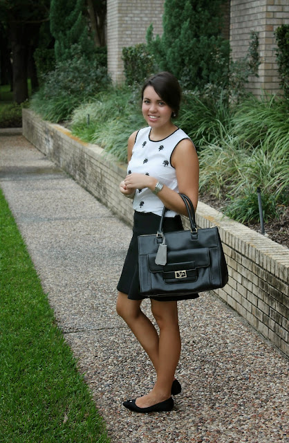 J.Crew jeweled sateen shell // J.Crew fluted skirt in double crepe // Chanel flats // Diane von Furstenburg top handle tote (similar) // David Yurman amethyst and pearl bracelets, buckle bracelet // Tiffany & Co. Venetian link bracelet // gifted Michelle watch & diamond earrings