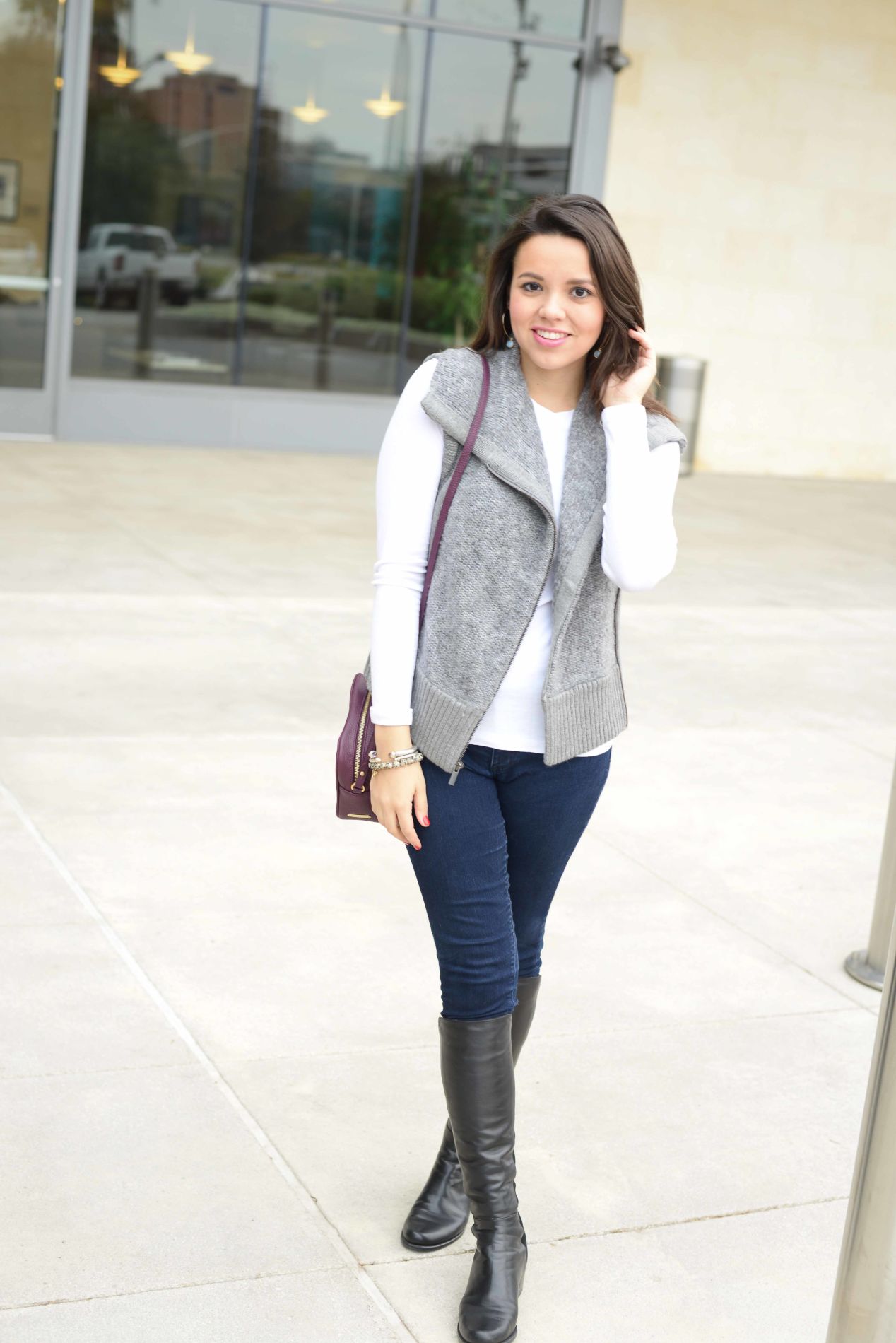 Lauren Anderson photography Vest: Banana Republic (sold out online, check local stores – boucle sweater vest – similar here & here and boucle jacket version // Shirt: Gap // Jeans: Joe’s Jeans // Boots: Stuart Weitzman // Bag: GiGi New…