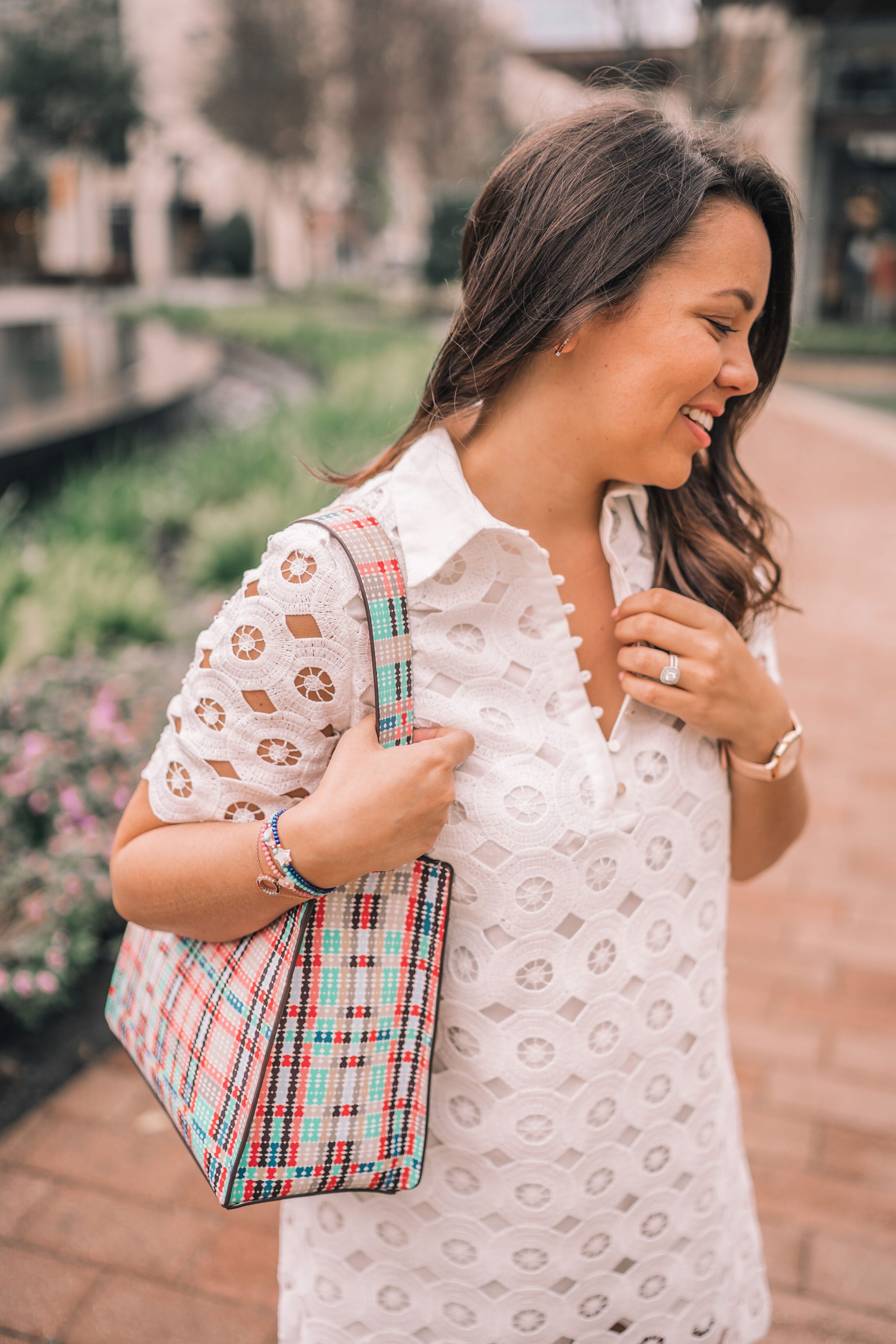 There’s something about a classic white eyelet shirtdress that’s so perfect for spring. Temperatures are finally warming up and we can actually think about baring our legs without freezing our buns off! I’m not sure why, but eyelet just resonates with Easter for me. I love the fabric and think it’s such a timeless classic.