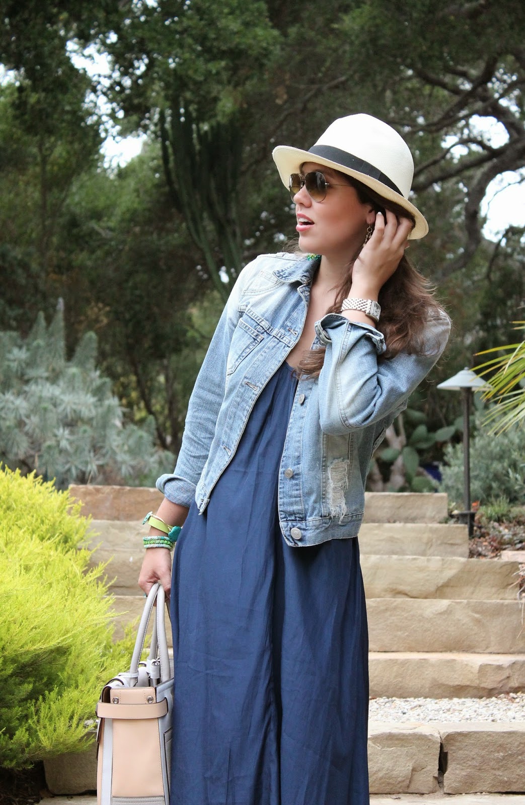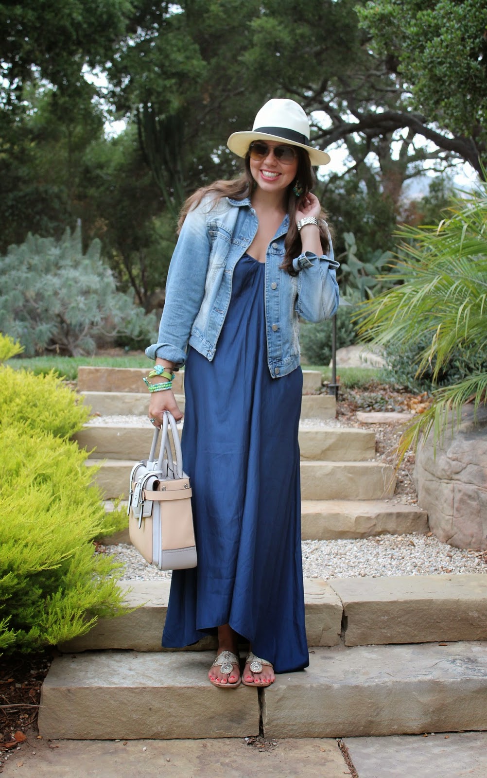 I love flowy maxi dresses & this one is gorgeous on you!! The colour, jean jacket & accessories all go so well together-perfect styling!