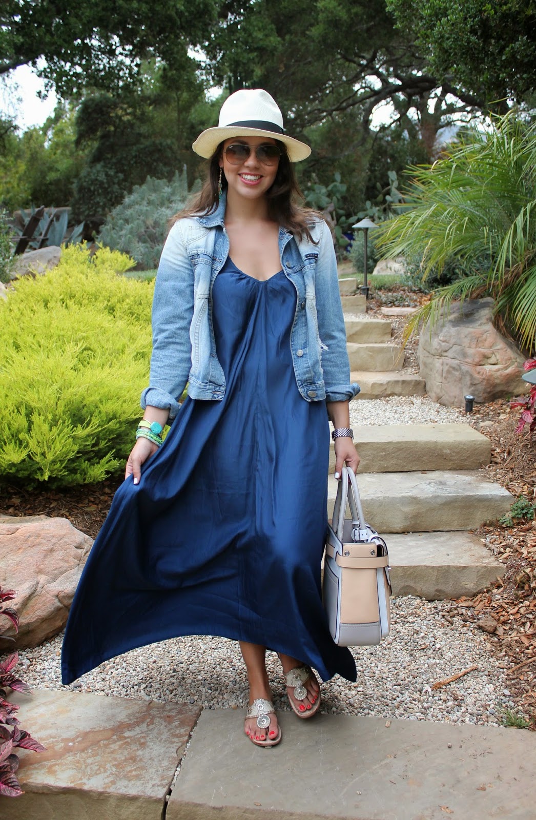 I love flowy maxi dresses & this one is gorgeous on you!! The colour, jean jacket & accessories all go so well together-perfect styling!