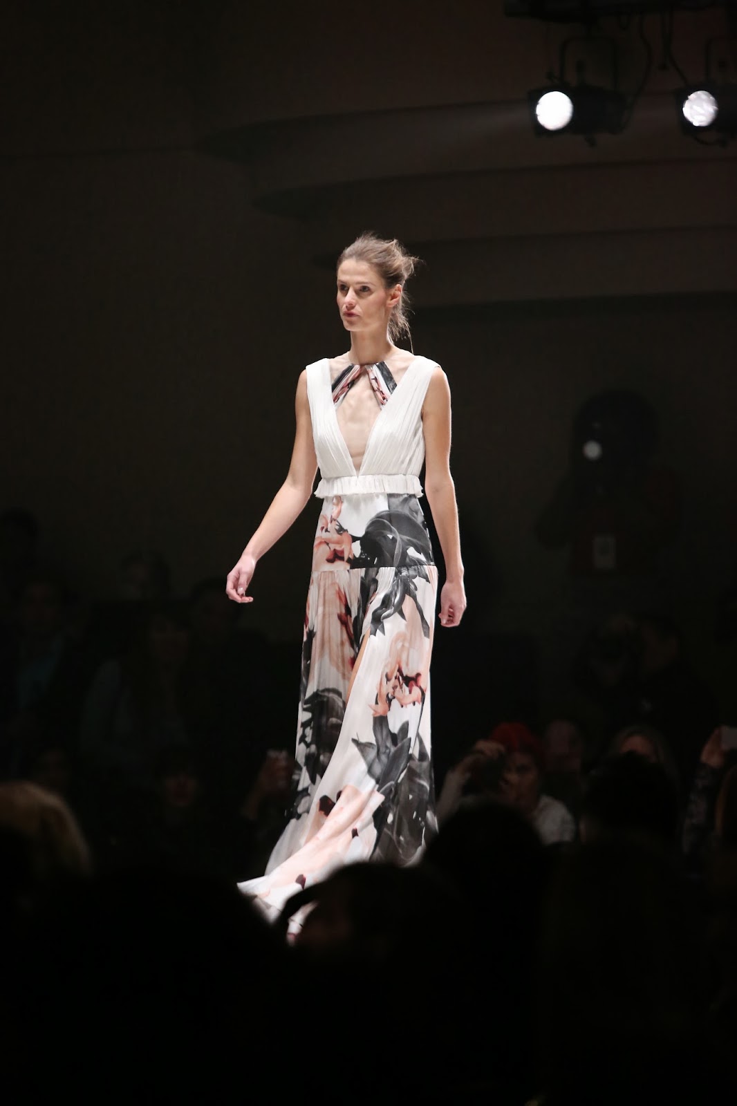 I must confess I wasn’t exactly familiar with Bibhu or his designs, but the moment that first look appeared on the runway, I was truly mesmerized. The ethereal gowns and party frocks, expertly draped pleats and flow that hugged the models’ bodies perfectly… Bibhu had me at hello, and certainly won me over as the presentation went on. Practically all his pieces were my favorites, but the rosette embellishments on the pale pink tee and cocktail dress were simply divine.