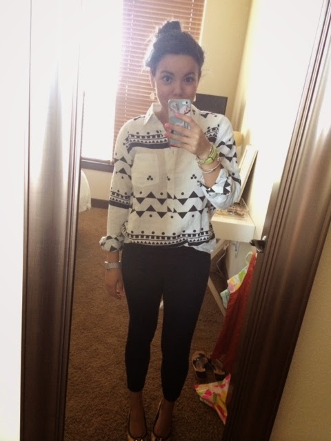 Shirt: J.Crew Factory // Pants: J.Crew // Shoes: Tory Burch (similar) // Earrings: Kendra Scott (similar) // Watch: Michele (non-diamond version) // Jewelry: David Yurman cuff, David Yurman bangle, Tiffany & Co. // Accessory: FitBit Flex