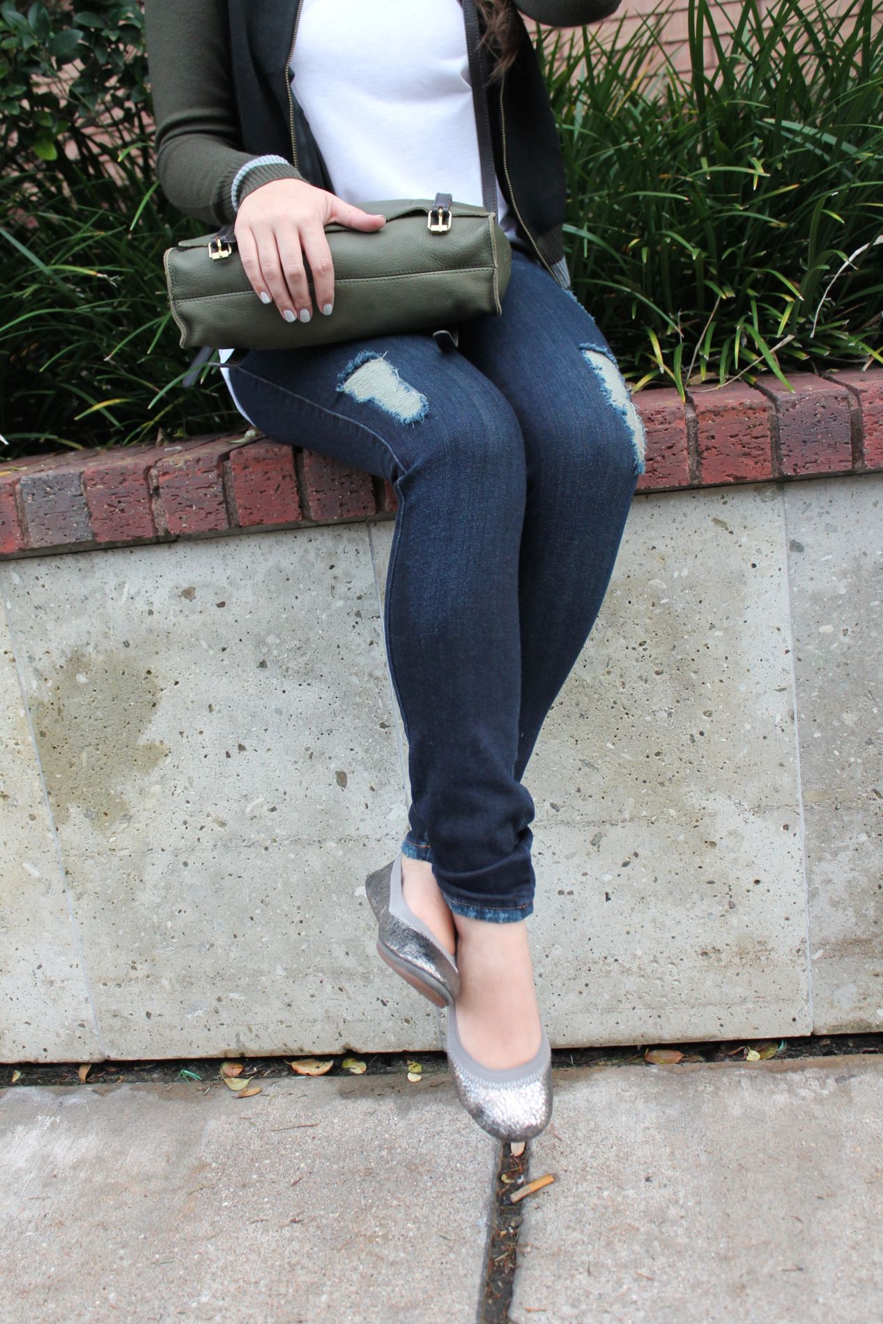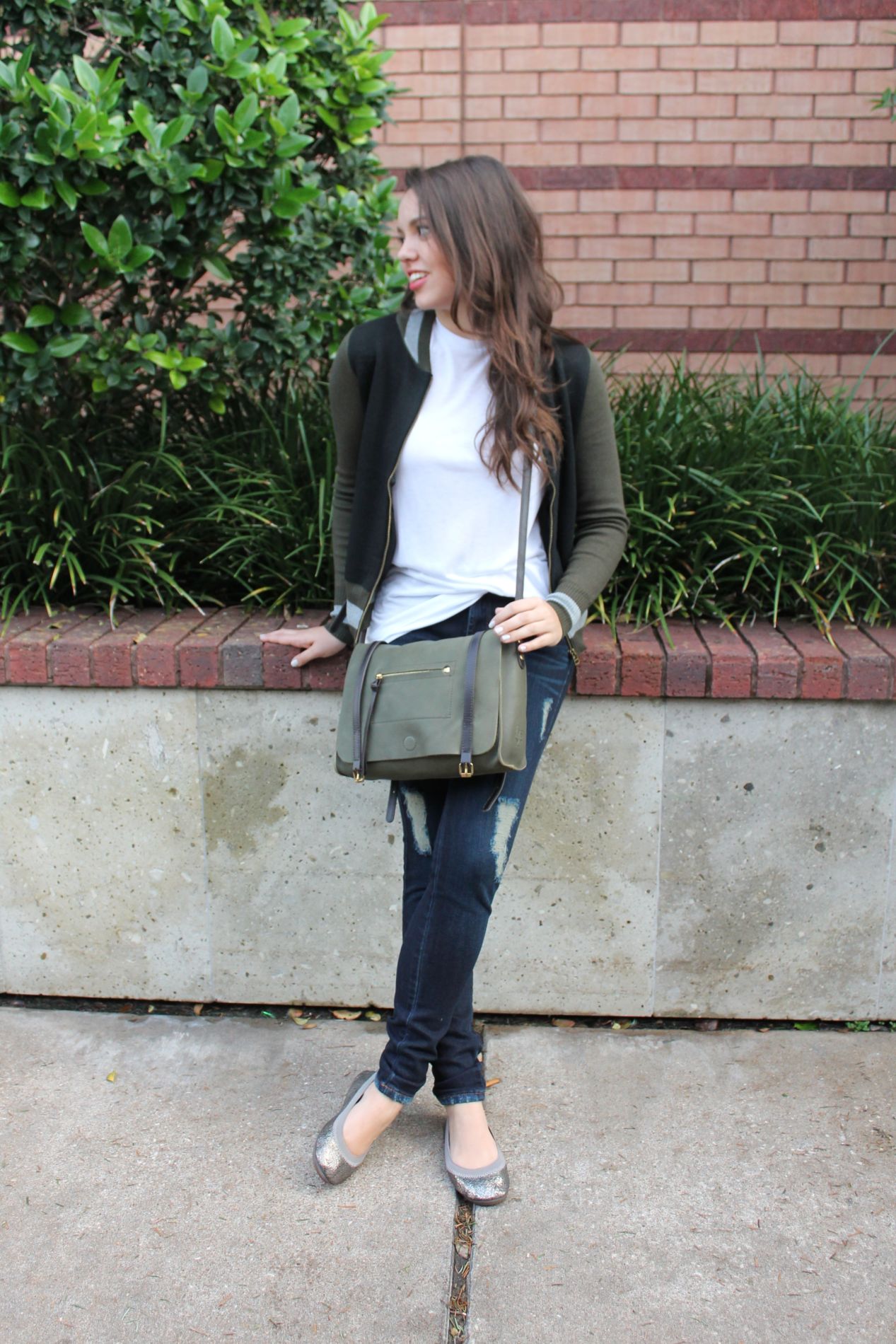 Jacket: Kerisma c/o // Tee: Getting Back To Square One // Jeans: James Jeans (so comfortable!!) // Purse: Linea Pelle (black version) // Flats: Yosi Samra (all via French Cuff Boutique Houston)