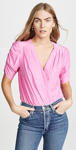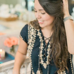 Such a beautiful top! I love how you stacked statement jewelry on around it.