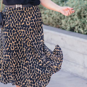 After taking an initial look around all the racks, I honed in on some pieces from brands that I know and love. I picked up this suede-like little black dress from one of my favorite brands, Velvet by Graham and Spencer. Originally priced at $119, I paid just $23! Paired with a $42 on-trend black leather ring handle bag, that was originally $107, the look is perfect for a fall date night or happy hour.