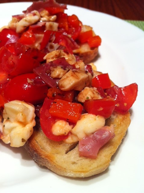 I’ve been having fun lately trying my hand at making all sorts of scrumptious things in my kitchen. Yesterday’s adventure to Whole Foods– yes I said adventure, I can’t go to a grocery store and not spend at least an hour wandering around– led me to the idea of creating bruschetta.