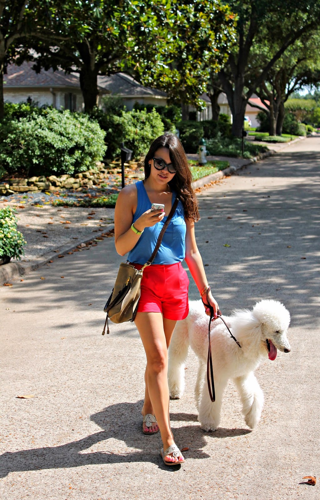 Cute look! Loving the color of your shorts! And your dog is adorbs!