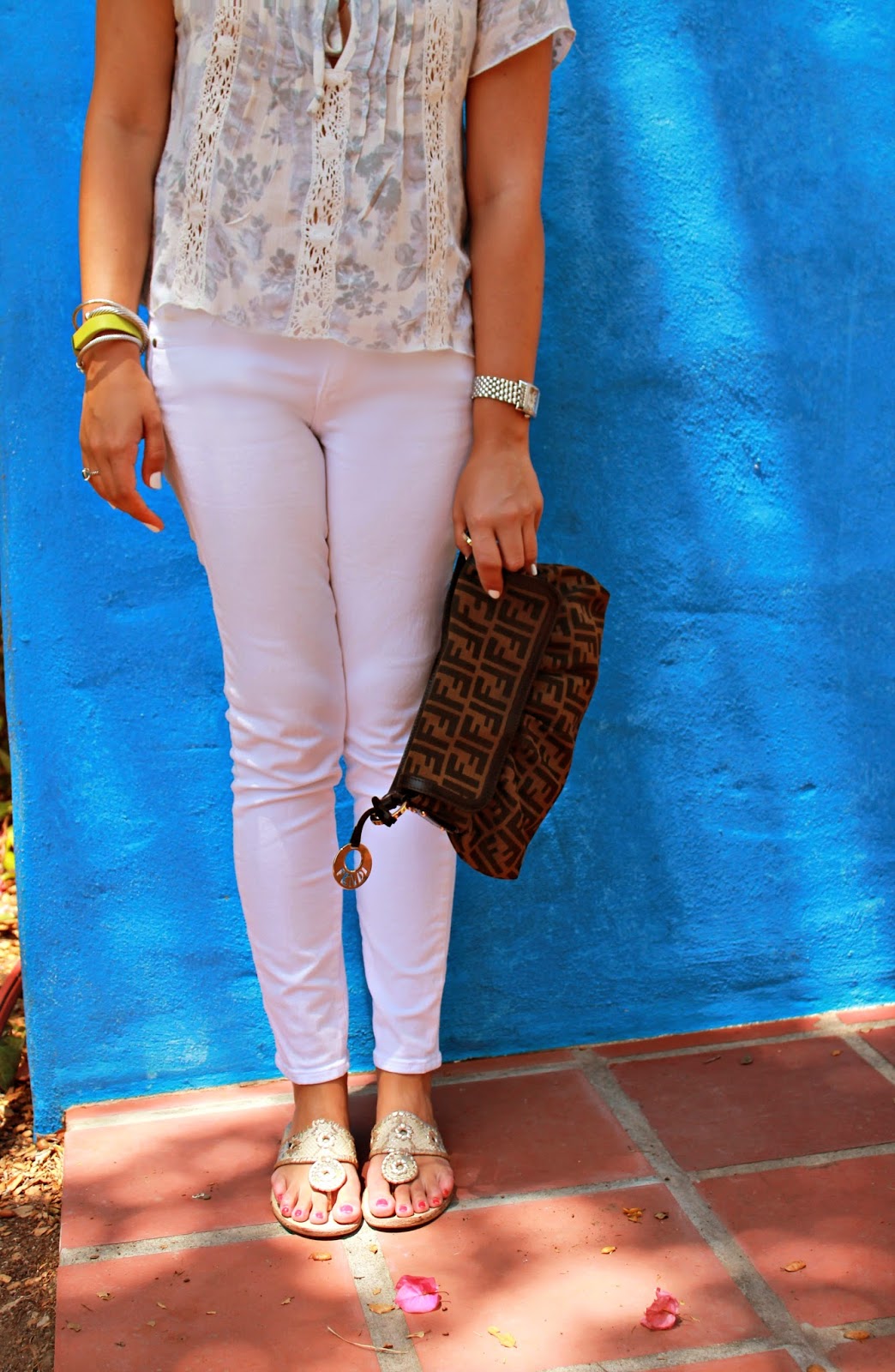 Top: Abercrombie & Fitch // Jeans: Paige // Sandals: Jack Rogers // Purse: Fendi // Sunglasses: Prada // Watch: Michele (without diamonds) // Ring: David Yurman // Bracelets: FitBit, David Yurman bangle, David Yurman cuff, David Yurman buckle bracelet