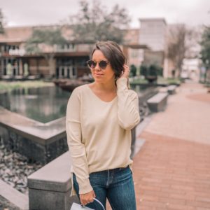 In my opinion, what makes this trust black blazer a piece for multiple occasions, is the cut and color. I’ve purchased quite a few blazers in my day, but I continually return back to this one because it’s classic black. The cut too, is a bit oversized, similar to what might be called a ‘boyfriend blazer’ and it just works so well with a variety of pieces worn underneath. I tend to opt for camisoles, but the roomier boyfriend cut also allows for t-shirts or blouses, too.